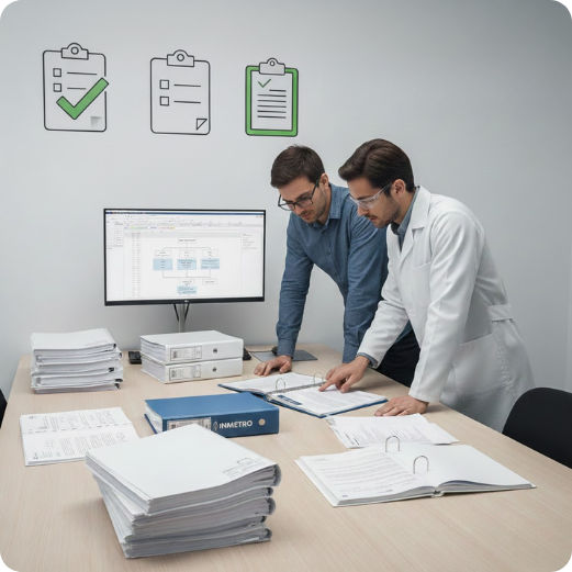 Nosso serviço inclui a adequação de toda a documentação e procedimentos, realização de auditoria interna e acompanhamento da auditoria com o órgão certificador de produtos.