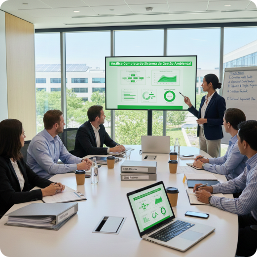 O prazo pode variar conforme o tamanho da empresa, o nível de maturidade da gestão ambiental e o grau de envolvimento da equipe durante a implementação.