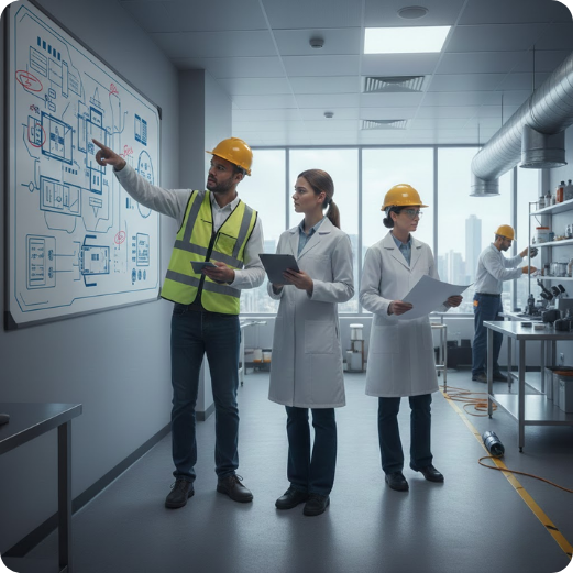 Normalmente envolve profissionais de engenharia, manutenção, operação e segurança, garantindo que todas as visões técnicas necessárias sejam consideradas.