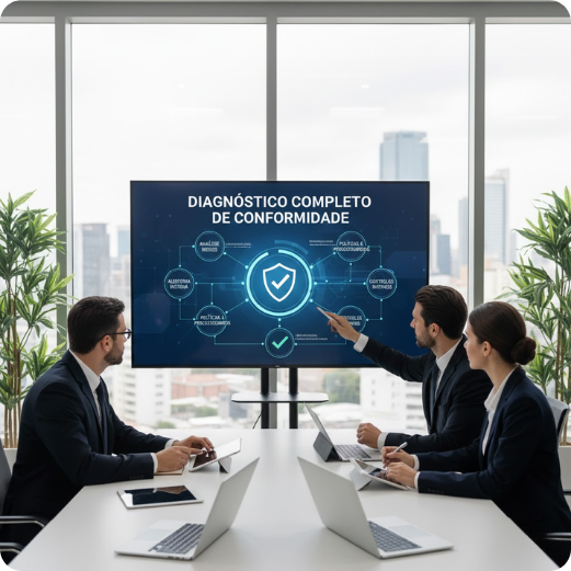 É preciso realizar um diagnóstico inicial, identificando riscos, vulnerabilidades e práticas existentes. A partir disso, define-se um plano estruturado com políticas, controles e responsabilidades.
