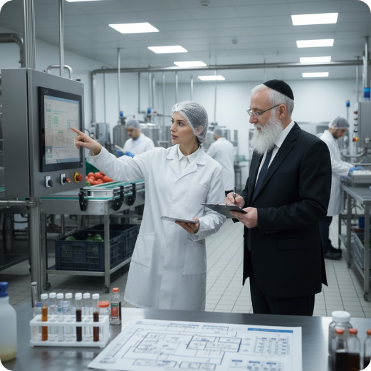A auditoria é realizada por um rabino ou organismo autorizado, que verifica todas as etapas produtivas, documentos e controles internos da empresa.
