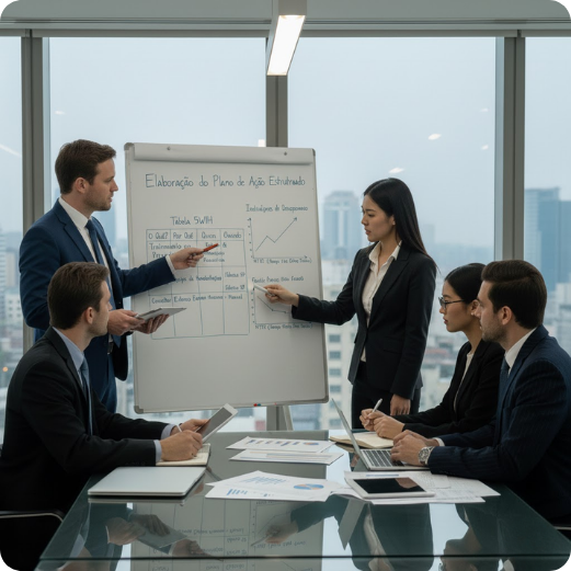 O tempo varia conforme a complexidade do problema, mas geralmente pode levar de alguns dias a algumas semanas, dependendo da coleta de dados e validação das ações.