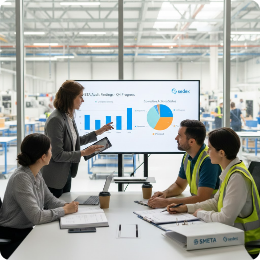 A SMETA avalia práticas trabalhistas, ambientais, de segurança e integridade para garantir que a empresa opere de forma ética e responsável perante a cadeia de fornecimento.